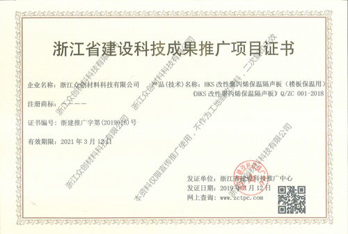浙江省建設(shè)科技推廣項(xiàng)目證書(shū)